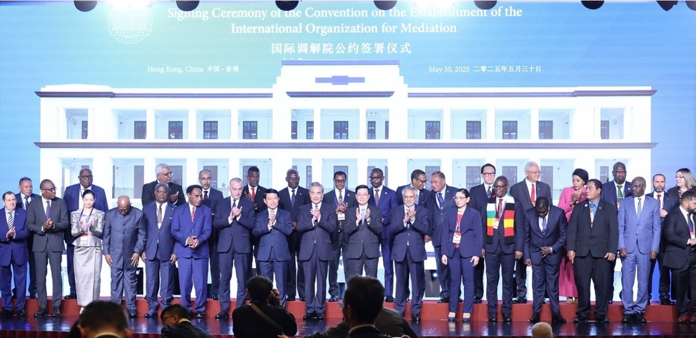 The signing ceremony for the Convention on the Establishment of the International Organization for Mediation was held in Hong Kong today (30th May ), with representatives from 32 countries, including China, signing the convention to become founding member states. Wang Yi, member of the Political Bureau of the CPC Central Committee and Foreign Minister, attended the event, along with representatives from over 80 countries and 20 international organizations. Many nations sent their foreign ministers or justice ministers to participate.